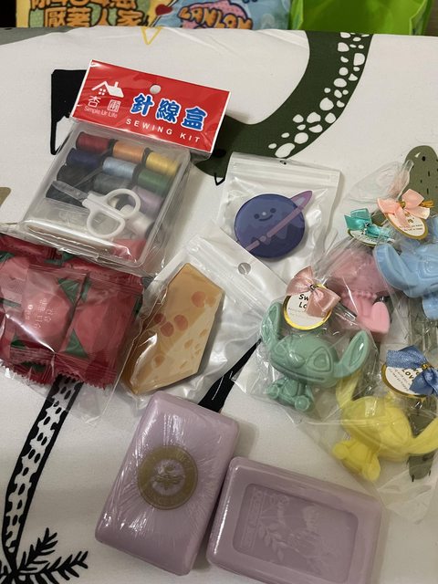 1.雜物(手機支架、針線盒、壓縮面膜、香皂)
