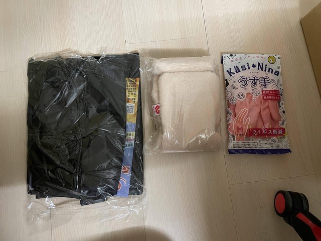 2.黑色大垃圾袋/捐血送的毛毛圍巾/日本洗碗手套M號