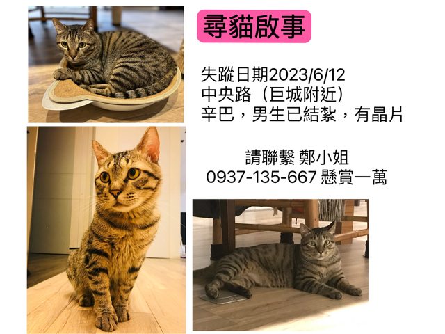 標題: [協尋/新竹市] 新竹巨城 公虎斑貓走失協尋