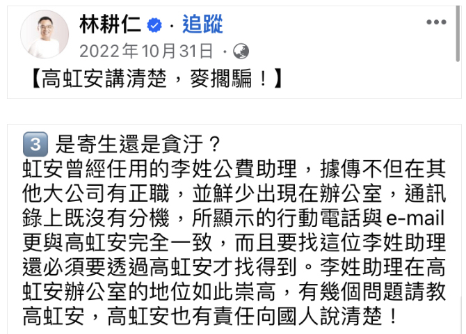 tysh710320 : 學高虹安的FB治理阿 通通刪除封鎖 只剩下買來的網 09/13 22:02