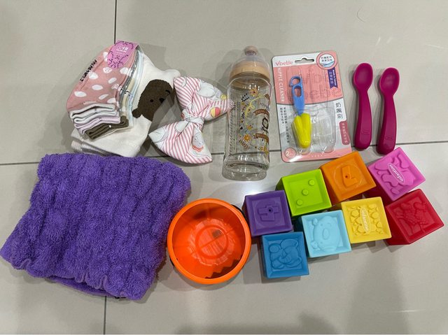 2. 奶瓶、肚圍、玩具、襪子、矽膠湯匙