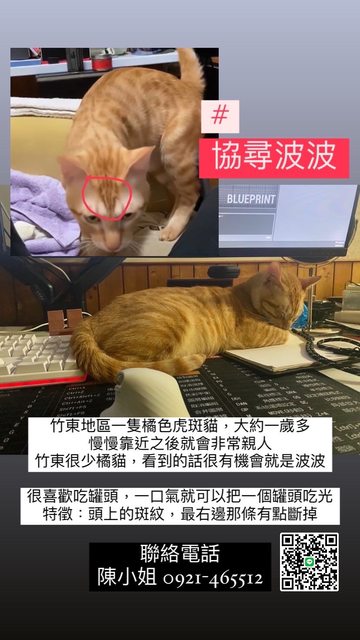 最後希望住在7-11竹東門市附近的鄉民們幫忙注意一下叫波波耳朵會動 但不一定會看你