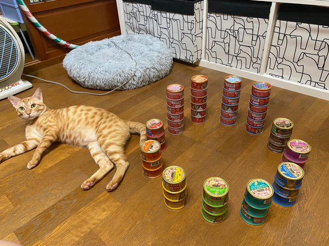 我沒管,一次買了48個罐頭回家,每種口味3個,便宜的貴的都買,