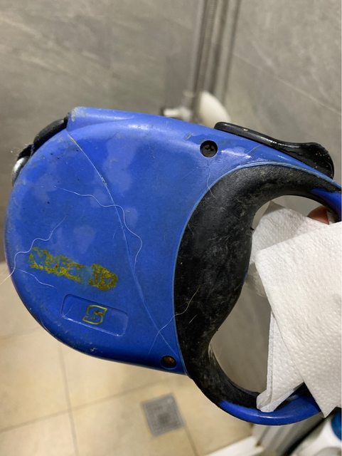 7.二手牽繩(伸縮)超久未使用,手把處發霉,有稍微擦拭過,但還是有痕跡