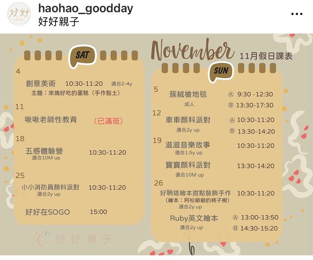附上10、11月課表