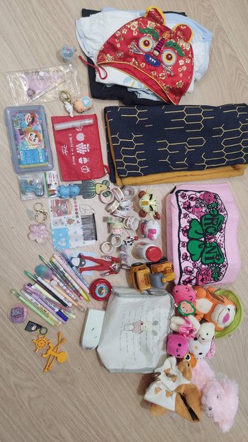 東西皆有二手使用痕跡,小孩衣服幾件尺寸約100為粗穿,玩具有蠟筆畫過痕跡須自行清