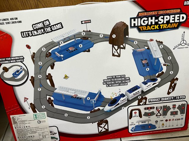 火車頭裝4號電池可以正常發動,但是中間車廂連接處斷裂,可能要自己另用卡榫,軌道