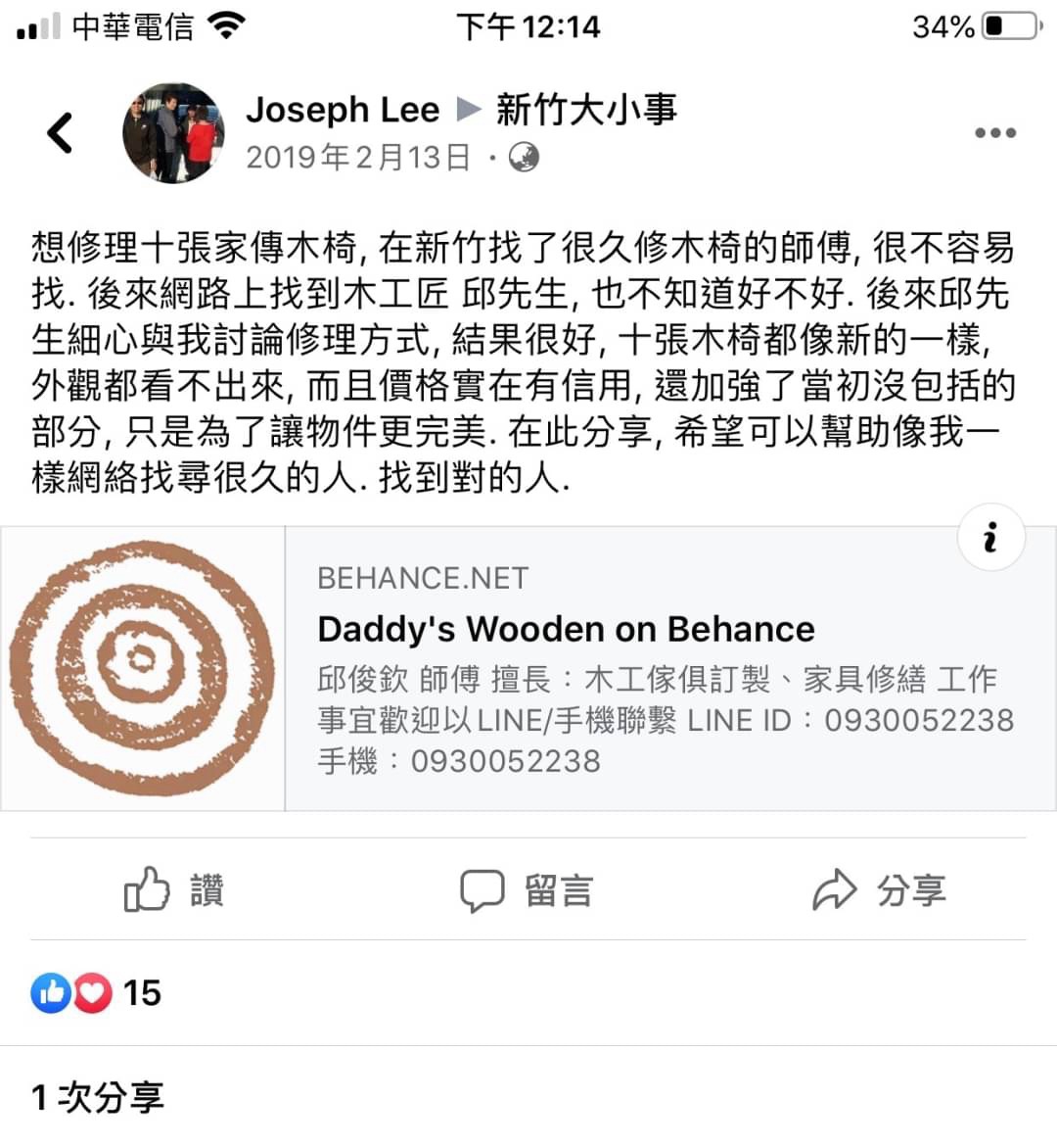 → tsaipiwei : 輩的嫁妝實木椅(結構搖晃),師傅慢功出細活,非常06/01 23:30