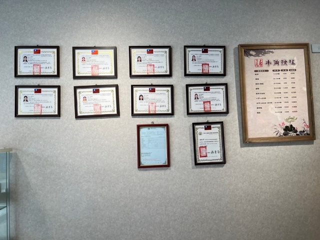 店內牆上掛著老師們的執照以及公開透明的價目表