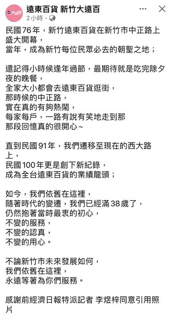 : 今天看到新竹大遠百的粉絲專頁