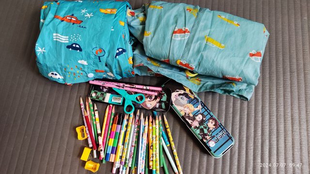 物品項目: 文具如圖 / 雨衣2件 大約可穿到小二