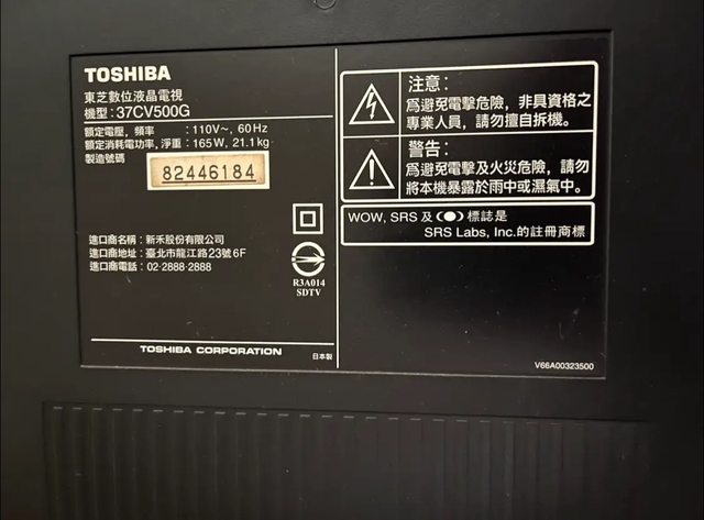 37吋TOSHIBA液晶電視,