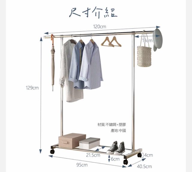 物品項目:有輪不鏽鋼曬衣架