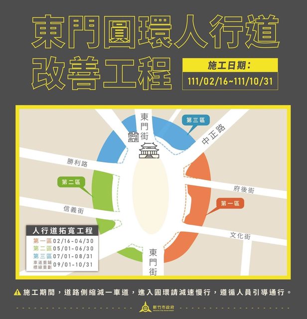 轉角人行道擴大、新增行人庇護島、紅綠燈與路牌更新 工程