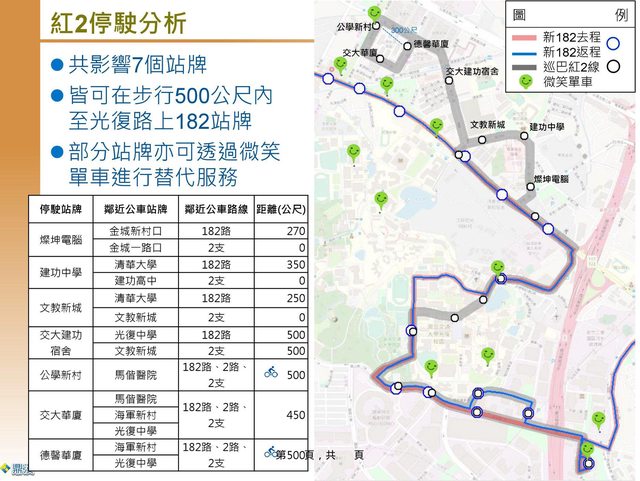 交大校內往返走不同條路 幾乎沒與小紅巴重疊