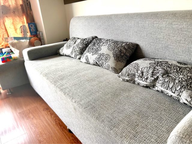 物品項目:三人座沙發(含腳凳及3個靠枕)