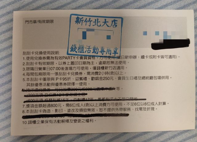 物品項目:錢櫃會員刮刮卡(BER啤酒一箱)