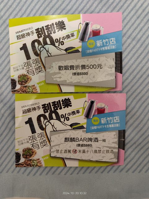 標題[贈送] 錢櫃會員刮刮樂(啤酒一箱)