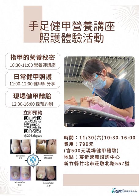 為了幫助大家擁有健康、亮麗的指甲,我們特別準備了【手足健甲營養講座 & 照護體驗