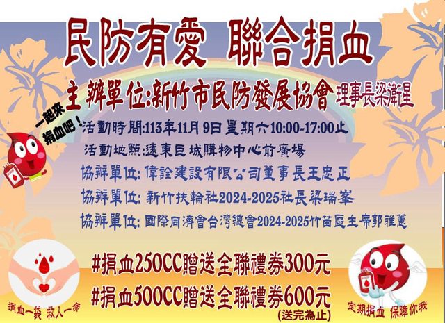 標題[捐血] 11/9 新竹市巨城捐血送全聯禮券