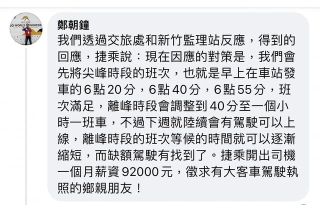推 alexds : 我覺得先培養民眾搭公車的意願和把班次縮短便利度 11/10 11:23