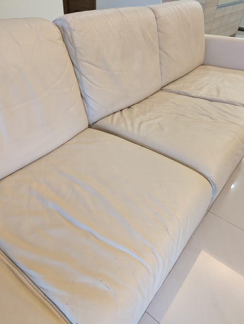 沙發有使用痕跡,些許斑駁,但功能正常,可接受再來信。