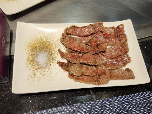 像七分以上。肉質紮實,可佐盤上的調味鹽享用。