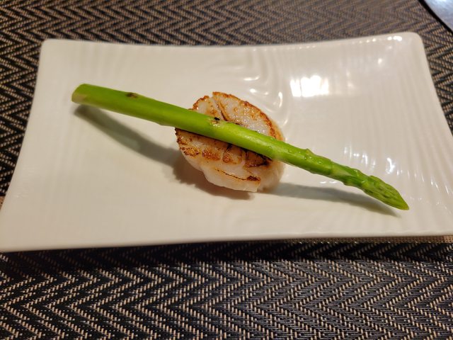第三道是干貝蘆筍,兩者沒什麼加成效果,干貝新鮮,熟