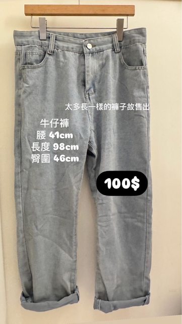 牛仔褲一件(圖片寫售價是原本要在社群賣出,但討論後還是決定用贈送的)
