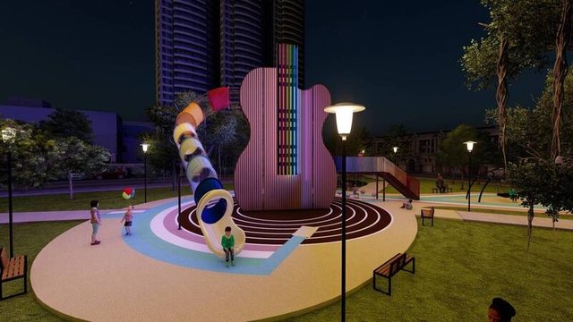 將引進約3層樓高、吉他造型的滑梯,以及俯看為高音譜記號的大型遊具;文林公園則是