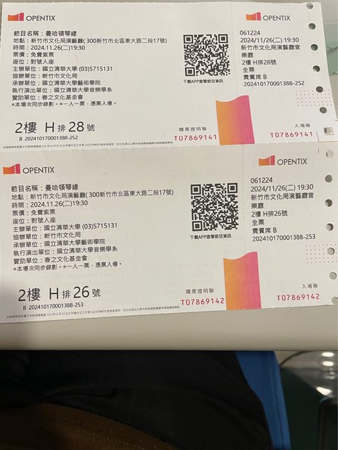 備 註:原本自己想去看的,臨時有事,希望有人可以拿去觀賞音樂會