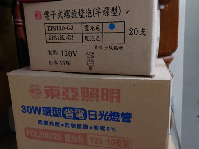 螺旋燈泡18顆,環狀燈管7顆