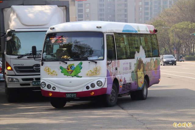 以五色鳥為標記的也是新竹縣政府自營的快捷1號公車。(記者黃美珠攝)