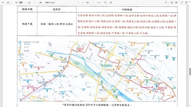 快捷9號已經籌備中了,縣府提供勝利八街作為發車的停車場