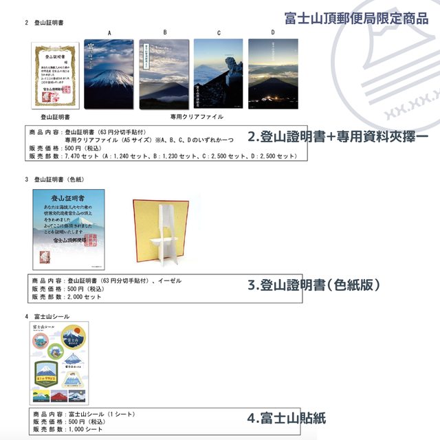 也有現場限定販售的登山證明書、個人化郵票、及周邊商品。