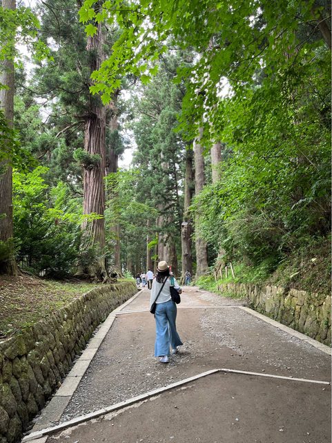 中尊寺的地勢較高,要經過兩旁都是3~400年杉樹的月見坂,走起來雖是爬坡,但非常涼