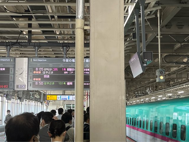 今天出發前往奧入瀨溪,早上搭08:05新幹線前往八戶;難得遇到新幹線小誤點(08:06列