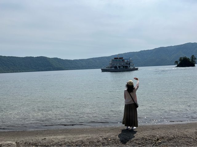 R巴士到十和田湖。因為本趟旅程已多次搭船,故沒有再搭十和田湖遊船。徒步到湖邊、