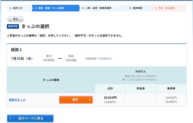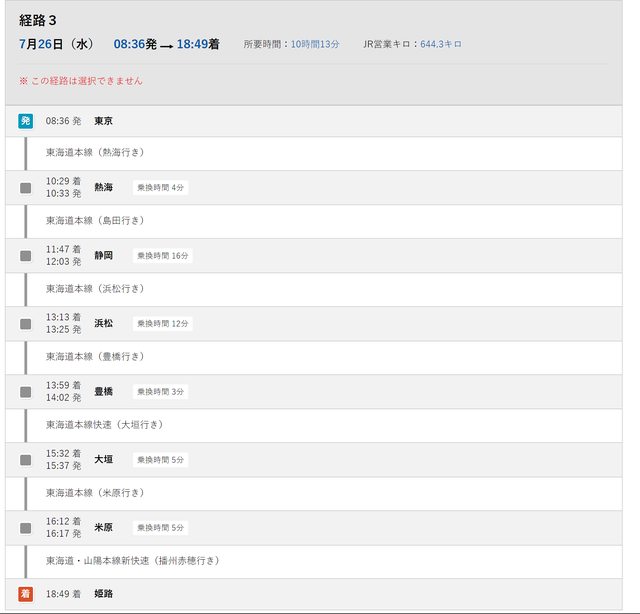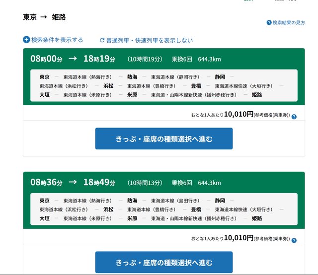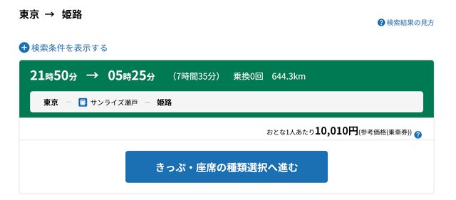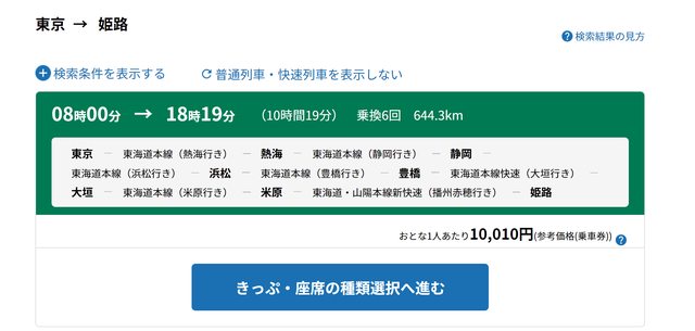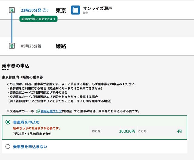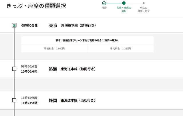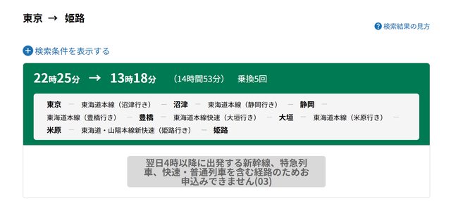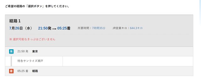 長途且無特急或新幹線之路線,會無法選擇