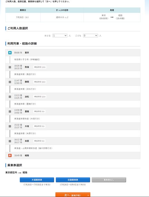 : 訂了8月從東京到姬路的B席