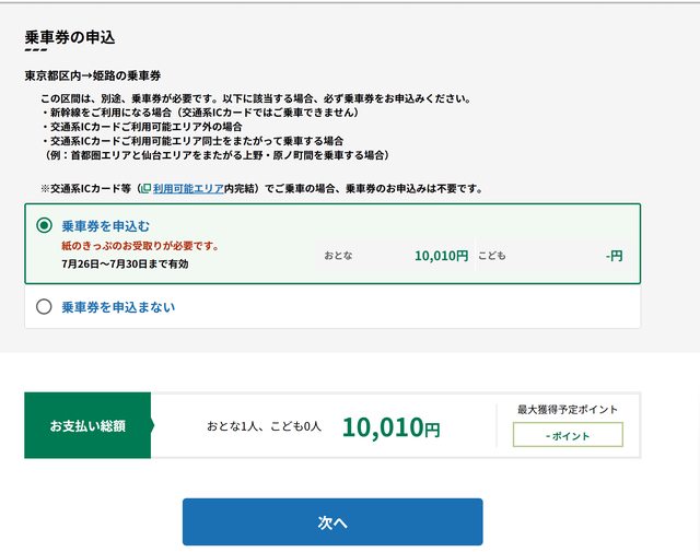 選"乗車券を申込む",接下來是結帳畫面