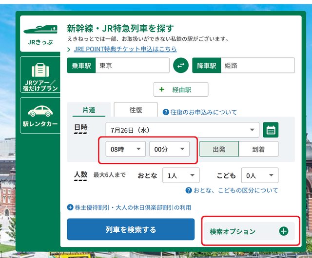 並勾選"乗車券のみ購入"(單買乗車券)後,再按"列車を檢索する"