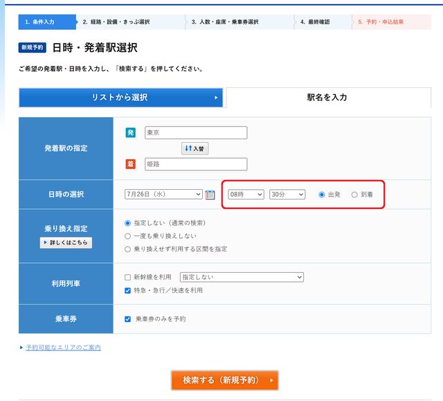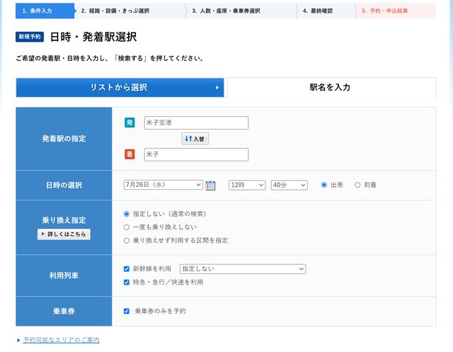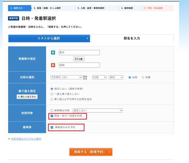 因為e5489要配合列車才能訂乗車券,所以"特急・急行/快速を利用"必勾選