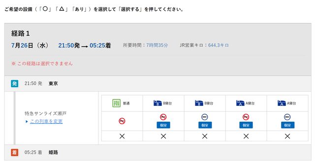若以サンライズ瀬戸發車時刻且該車剛好"沒位"