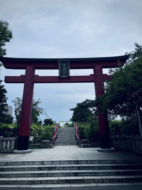 王子神社的鳥居要繞半圈才會到,來的時候沒發現,直接從親水公園走樓梯上去了,最後