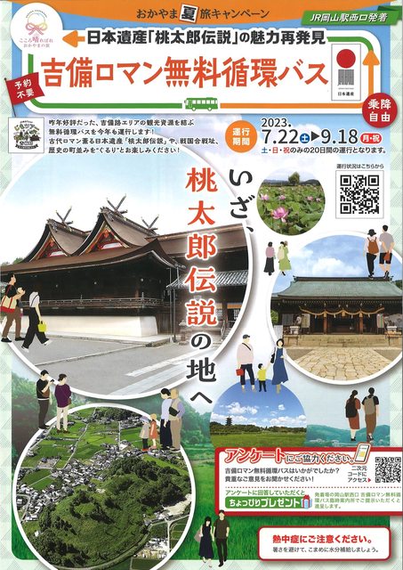 2023年7月22日~9月18日的週末假日有免費循環巴士可周游吉備路相關景點,無須預約,搭