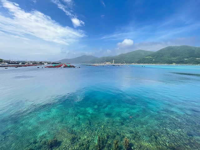 這裡的海超乾淨,有不同深淺的藍色。拍得到水面下的魚和珊瑚等等的