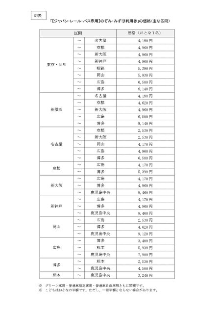 につきまして、価格改定を行います(JR四国除く)。JR各社のホームペー