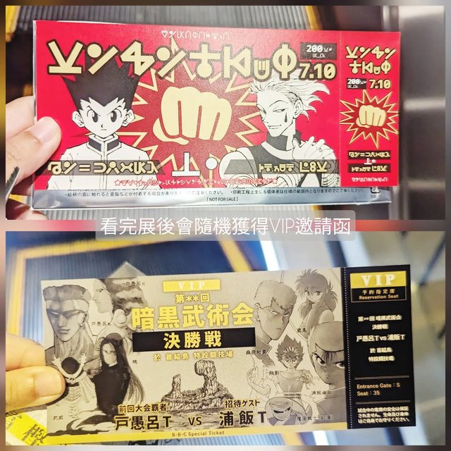 觀展後會送一張隨機的VIP紀念票券,獵人的全是獵人文字XD