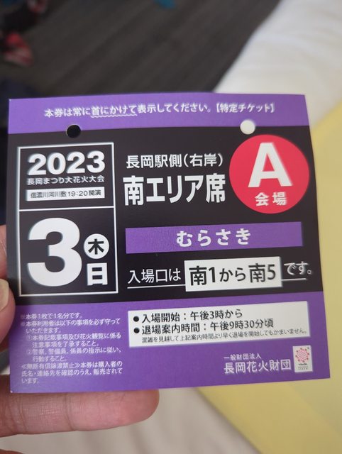 1. 讓售品項:長岡花火A區門票一張